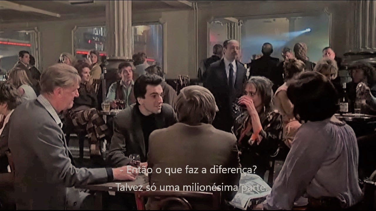 “Virava-se na cama, ao lado de Tereza que já dormia, pensando no que ela lhe dissera há vários anos no meio de uma conversa banal. Estavam a falar de Z., um amigo de Tomas, e Tereza declarara: ‘Se não tivesse encontrado você, teria me apaixonado por ele.’ Já nessa época, essas palavras o tinham feito mergulhar numa estranha melancolia. Com efeito, compreendera de súbito que Tereza se apaixonara por ele e não por Z. perfeitamente por acaso. Que, para lá do seu amor por Tomas, já realizado, havia no reino dos possíveis um número infinito de amores não realizados por outros homens. Acreditamos todos que é impensável que o grande amor da nossa vida seja algo de leve, algo que não pesa nada; supomos que já estava escrito que o nosso amor tinha de ser o que é; que a nossa vida não era a mesma sem ele. Estamos todos convencidos de que o próprio Beethoven em pessoa, com o seu ar carrancudo e os cabelos em desordem, toca o seu Es muss sein! para nosso grande amor.”